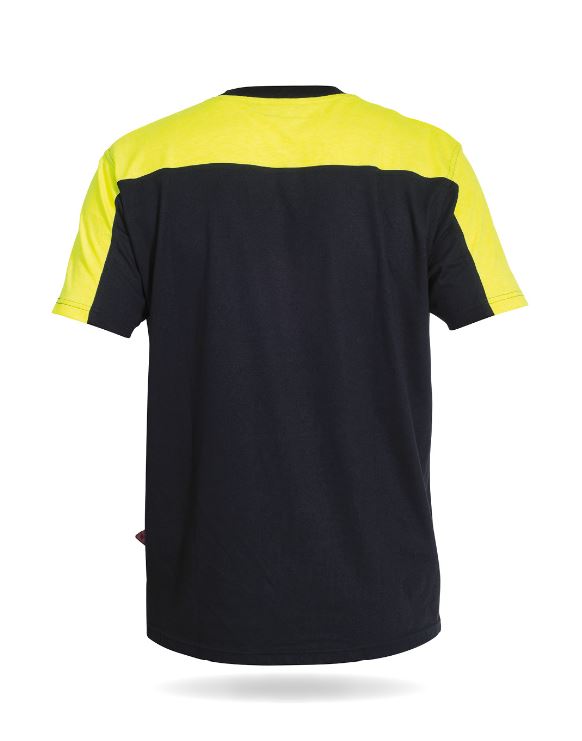 Article number : 1022100099710003 Unit: pcs In stock/unit: 126 Modern single jersey t-shirt with double collar and neck strap. 100% Cotton 180g / m warning section in 100% polyester sewn on top for maximum comfort. Pick size: XS S M L XL XXL 3XL Colour: Svart/Varselgul