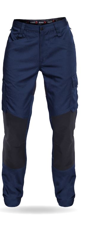 Servicebyxa med stor rörlighet. Stretchtyg bak över hela sätespartiet, i grenen och över knäna ger extra bra rörlighet. Två benfickor med mobilficka. 65% polyester, 35% bomull, 230 g/m2. Material: 2: 91,5% nylon, 8,5% spandex, 245 g/m2.
